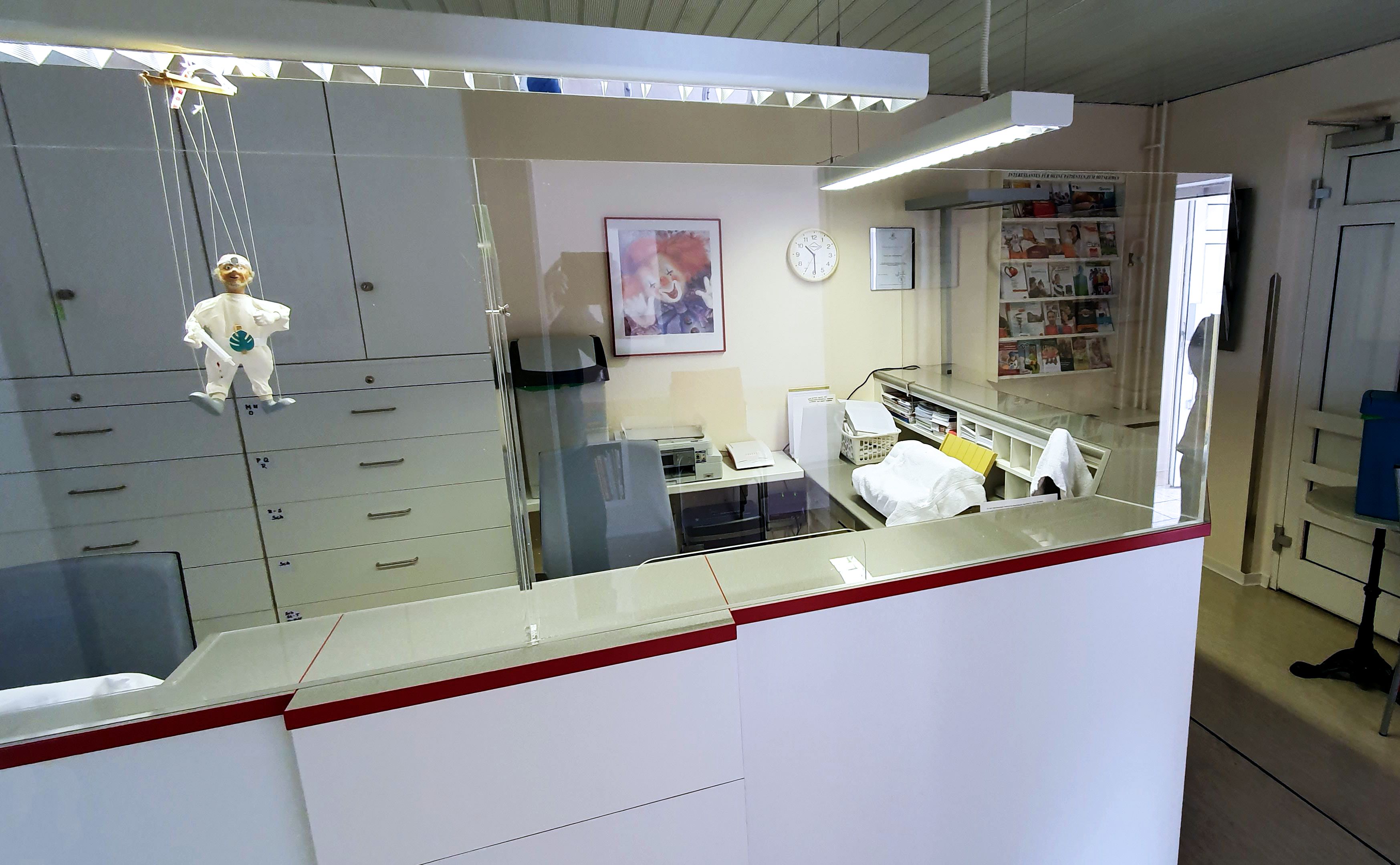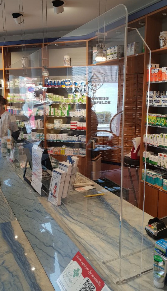 Wir fertigen die Schutzscheiben aus transparenten Acrylglas.